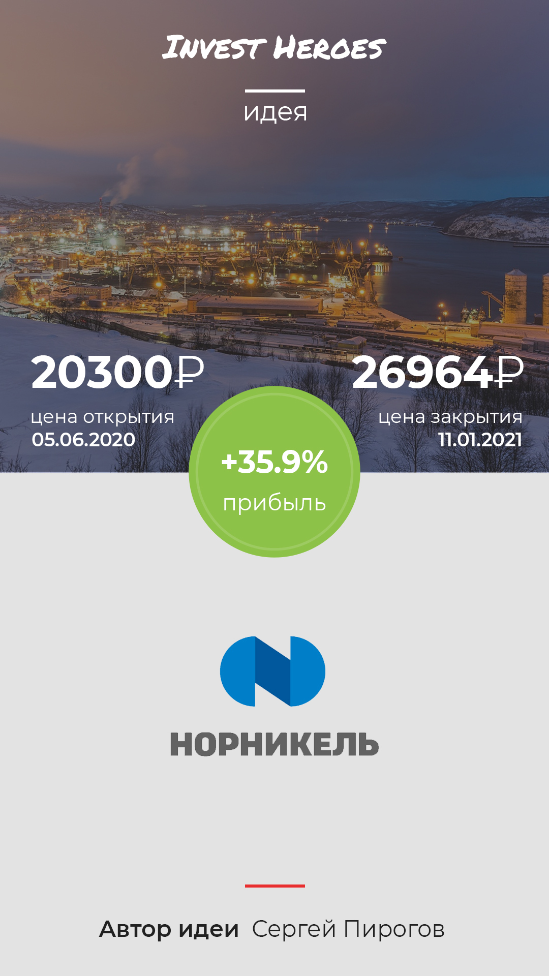 » Норникель +36% за полгода (72% годовых)