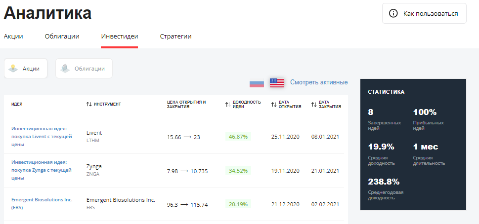 В отличие от российской аналитики, в этом продукте мы фокусируемся на поиске идей в новых компаниях. Это возможно благодаря большему количеству доступных для торговли компаний.