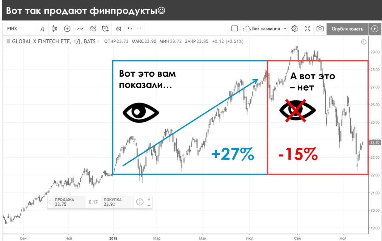 Соответственно, решил поделиться с вами тем, на что следует обращать внимание, а именно - тем, как продавцы финпродуктов (таких как ETF например), порой манипулируют данными.