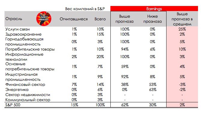👉 идут отчеты по компаниям в США, пока компании в среднем недотягивают по выручке на 1%, но опережают прогнозы по прибыли на 2%