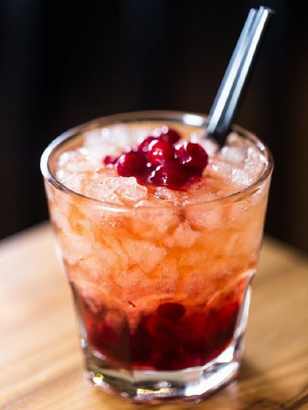 2. Добавить ангостуру, перемешать и украсить клюквой.
