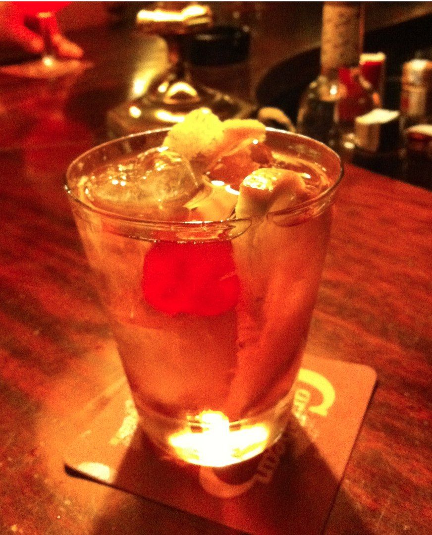 2. Перелейте через стрейнер в олд-фешенд с кубиками льда.
