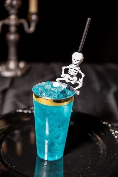 2. Наполнить газированной водой. Украсить скелетом.