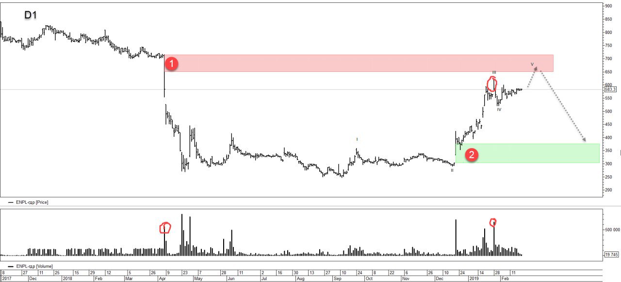 Бумага перспективна, но всему свое время. Нужна корректировка. Полагаю в моменте формируется волна II в формате зигзага [A][B][C]. Причина такого суждения, всплеск большого объема из зоны продаж 2. Целью окончания коррекции может выступить диапазон 1. После которой ожидаю движение в рамках волны III.