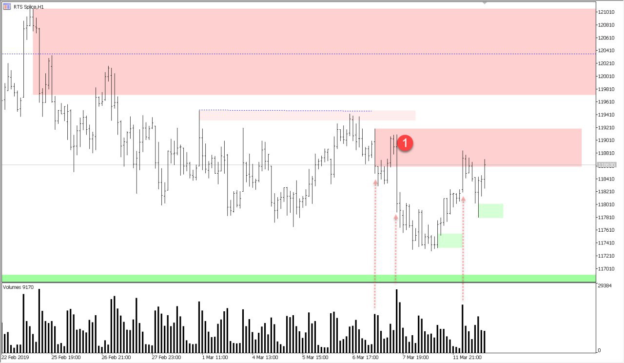 Цена попала в зону продаж 1. Ожидаю снижение к диапазону покупок 2.