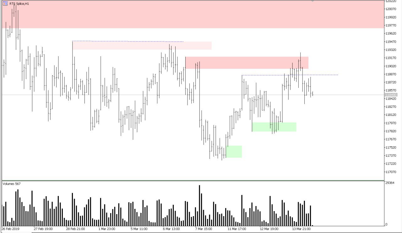 По сути, план работает еще с прошлого года. Расскажу о текущей ситуации. Цена в данный момент находится в диапазоне покупок. Возобновление этих покупок очень плохое, что свидетельствует о слабости быков. К тому же зона поддержки неоднократно ослаблялась. Ожидаю движение к линии SP.
