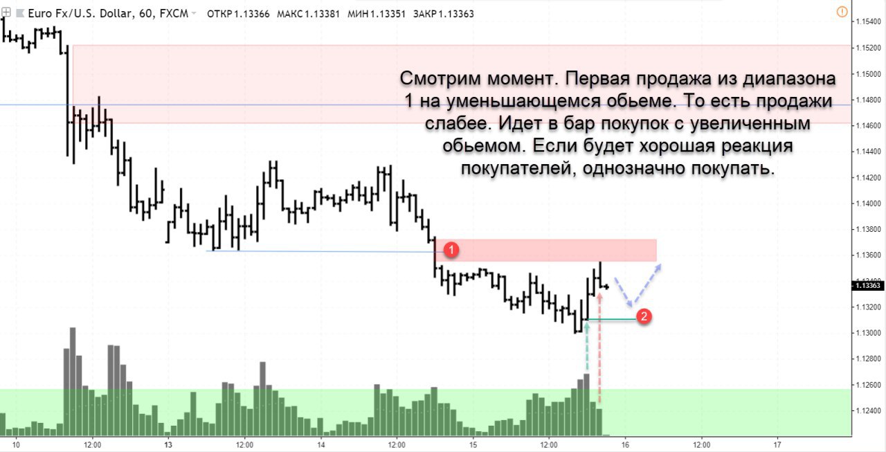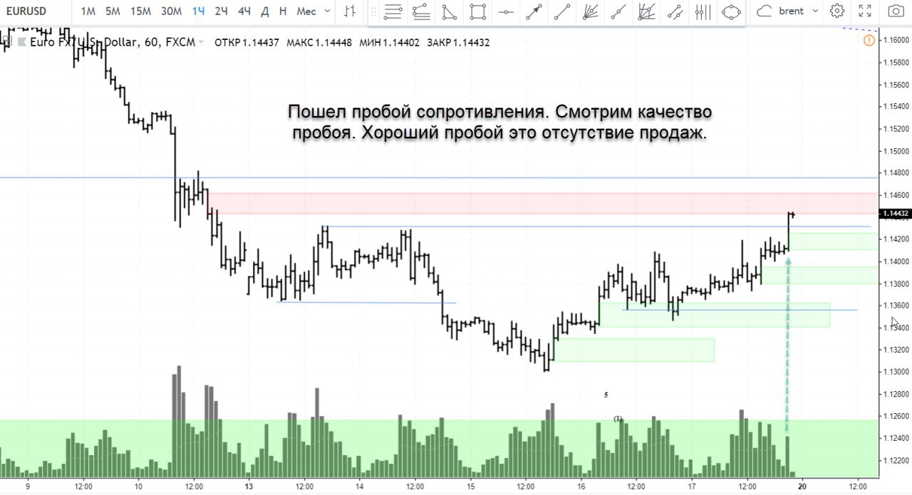 Все довольно не плохо выглядит, пошли обьемчики на покупках. Кто то вступил в игру. Я бы хотел попробовать лонг, но прежде проверить продажи и идти против них если они слабы.