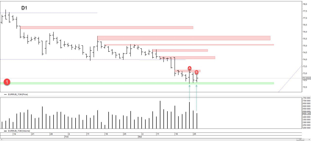 Все внимание приковано к диапазону А. Возобновление продаж сегодня плохое. В моменте ожидаю возобновление роста к этому же диапазону. Если не окажется продавцов или они будут слабы, то произойдет отмена похода ниже и будет продолжение движения по тренду.