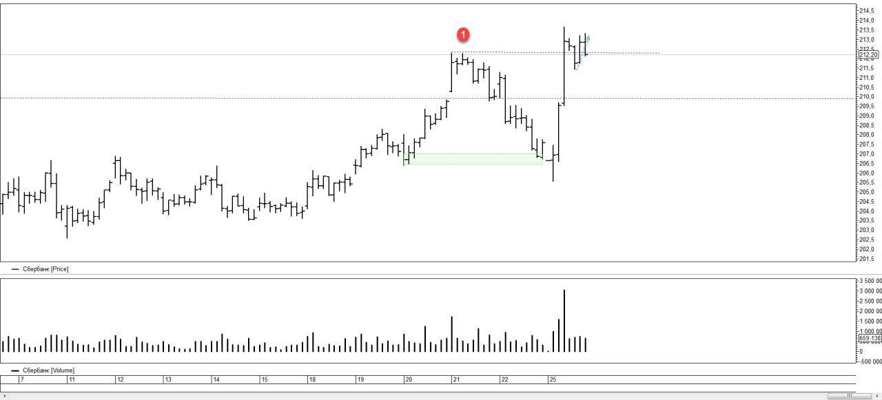 Давно не говорил о нем. В моменте из диапазона покупок 1, возобновление роста очень плохое. Конкретно, сравниваю два бара A и B. Понятно что день еще не окончен, но маловероятно что картина поменяется. Возобновление покупок на баре В намного хуже покупок A. Слабость уровня. Работаю по плану.