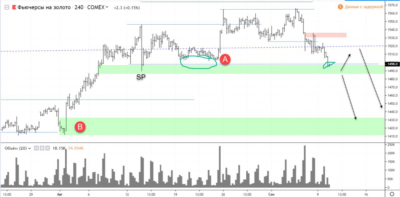 Итак, цена в диапазоне A. К тому же снова на тесте SP, тем самым ослабляя его. В случае плохого возобновления или отсутствия покупок, ожидаю диапазон B. Направление.