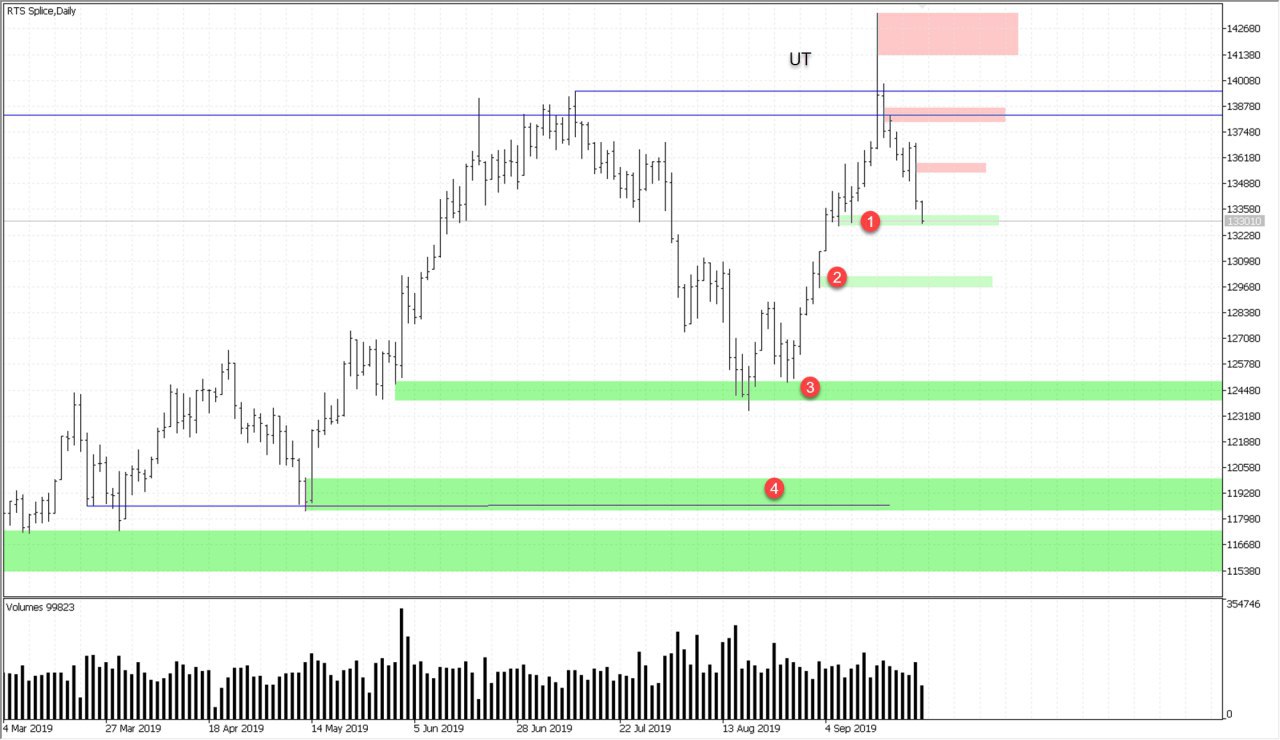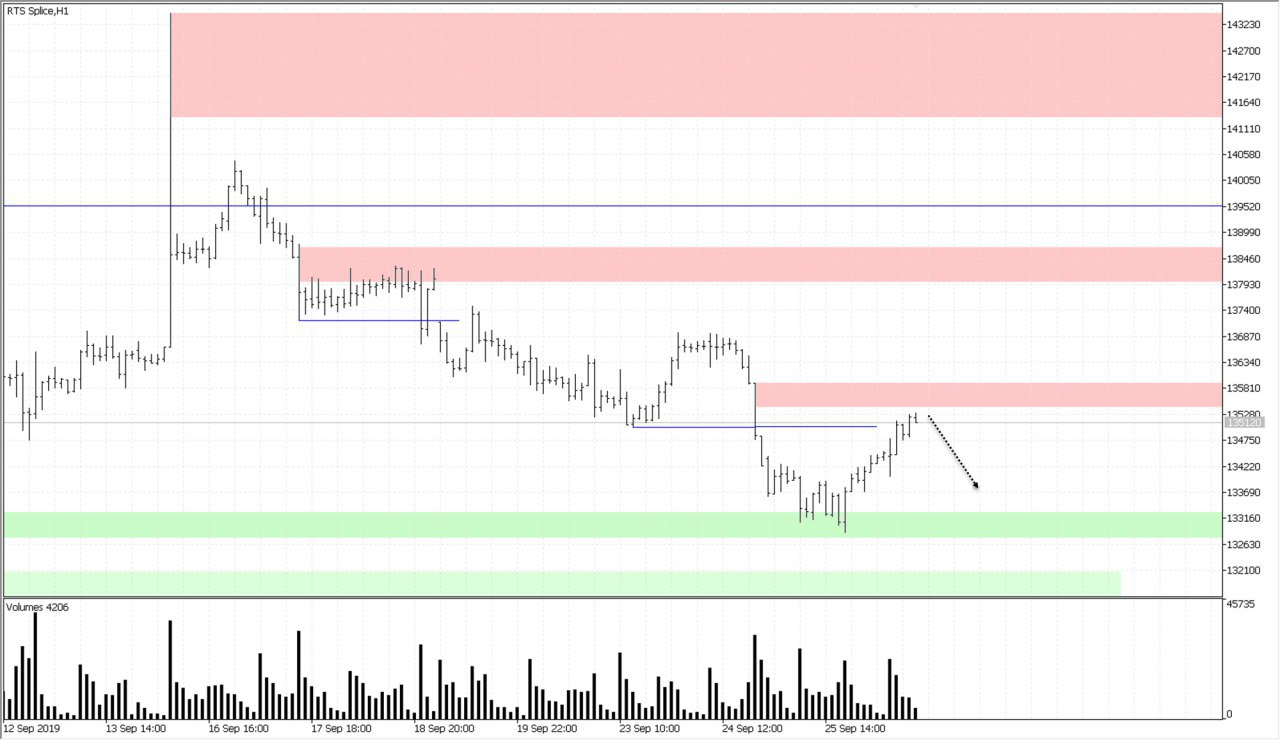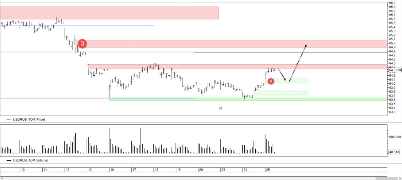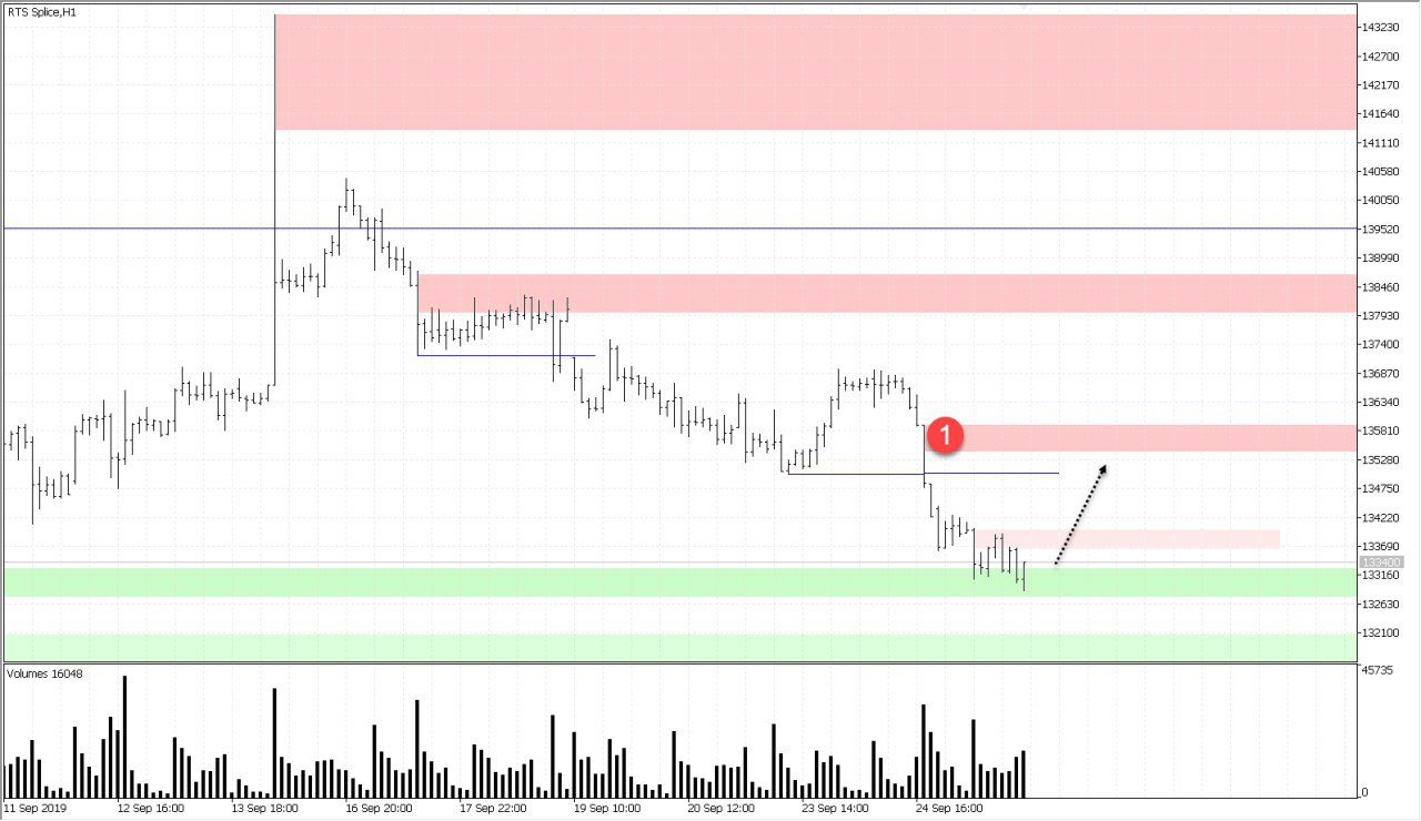 Цена отработала цель локально. Ожидаю реакции со стороны продаж. В случае активности, высока вероятность пройти к диапазону 2.