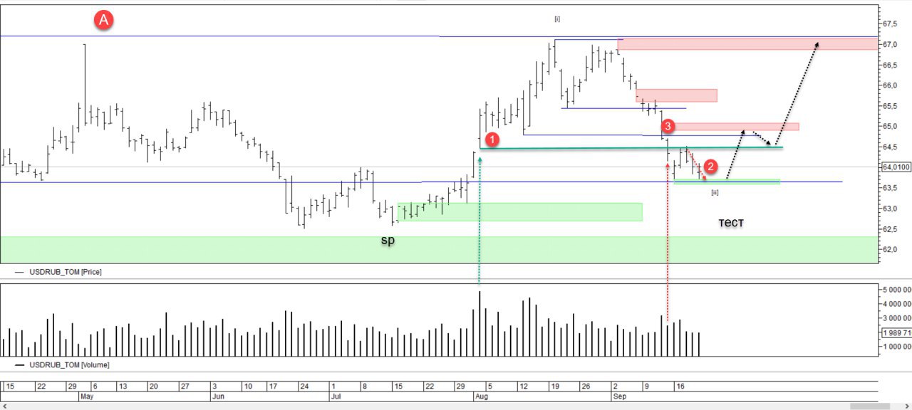 Так вот, цель снижения выполнена. Ожидаю разворот по некоторым причинам. Те объемы, что выкупались в апреле прошлого года не выходили. Напротив, в этом году проходило накопление доллара, о котором так же писал тут. После накопления как ожидалось волна покупок прошла именно через отспринговку низов, быстренько добежав до сопротивления А, после которого ожидался возврат к тесту sp. Отлично, вернулись. И меня заинтересовали некоторые моменты. Прошлые покупки 1, поглотили достаточно малым объемом, что впринципе говорит о манипуляции. Цена слишком быстро спустилась, без тестов, что опять же говорит о загоне. В моменте цена на тесте sp и видно что продажи 2 остыли. Полагаю что начнут включаться быки и дотолкают до диапазона 3. Там самый интересный момент. В случае слабых продавцов, мы увидим движение к диапазону А, который и так достаточно ослаб. Не доставит особого труда прорвать эту зону и начать разгонять цену по плану.