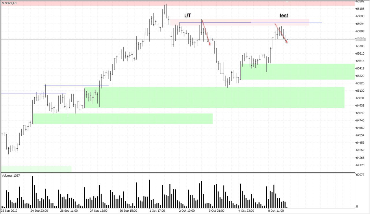 Нудно, но пришли к диапазону 1 по плану. Диапазон сам по себе достаточно мощный. Но лучше разглядеть на дневках. Видно что основные объемы идут на продажу, тем самым формируя широкую зону продаж 2 с хорошими аптрастами. А вот спринг, не очень то и хорош. Если не окажется возобновления покупок или же оно будет слабым, целью будет являться следующийдиапазон покупок. В случае активности, цена пойдет ближе к тесту ut.