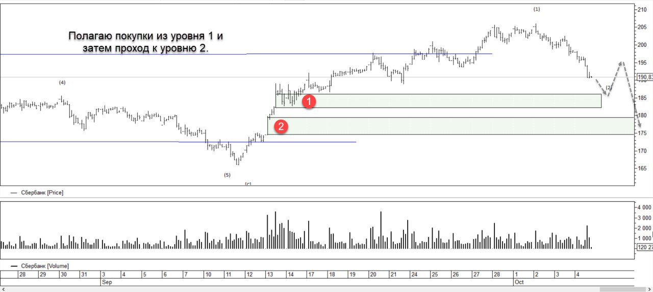 Скорее всего постоит в диапазоне и продожит снижаться к уровню 2 на 175-180.