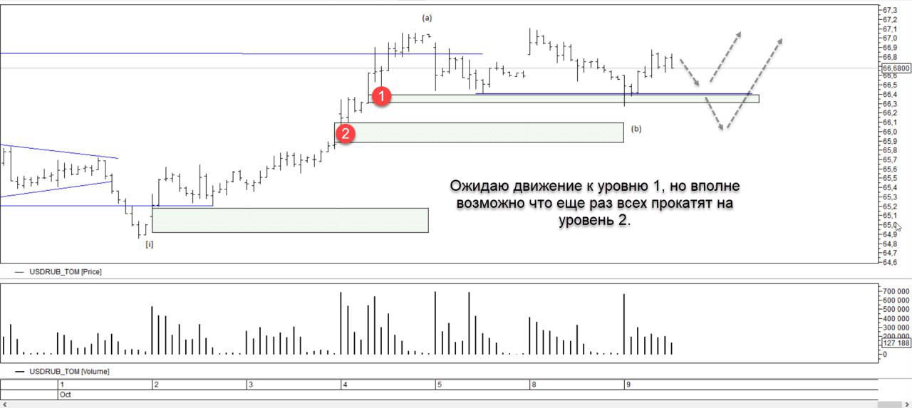 В текущей же ситуации на понедельник, считаю, что еще немного спустят цену. Волна (b) не выглядит законченной, да и как выяснилось, уровень 2 слабоват.