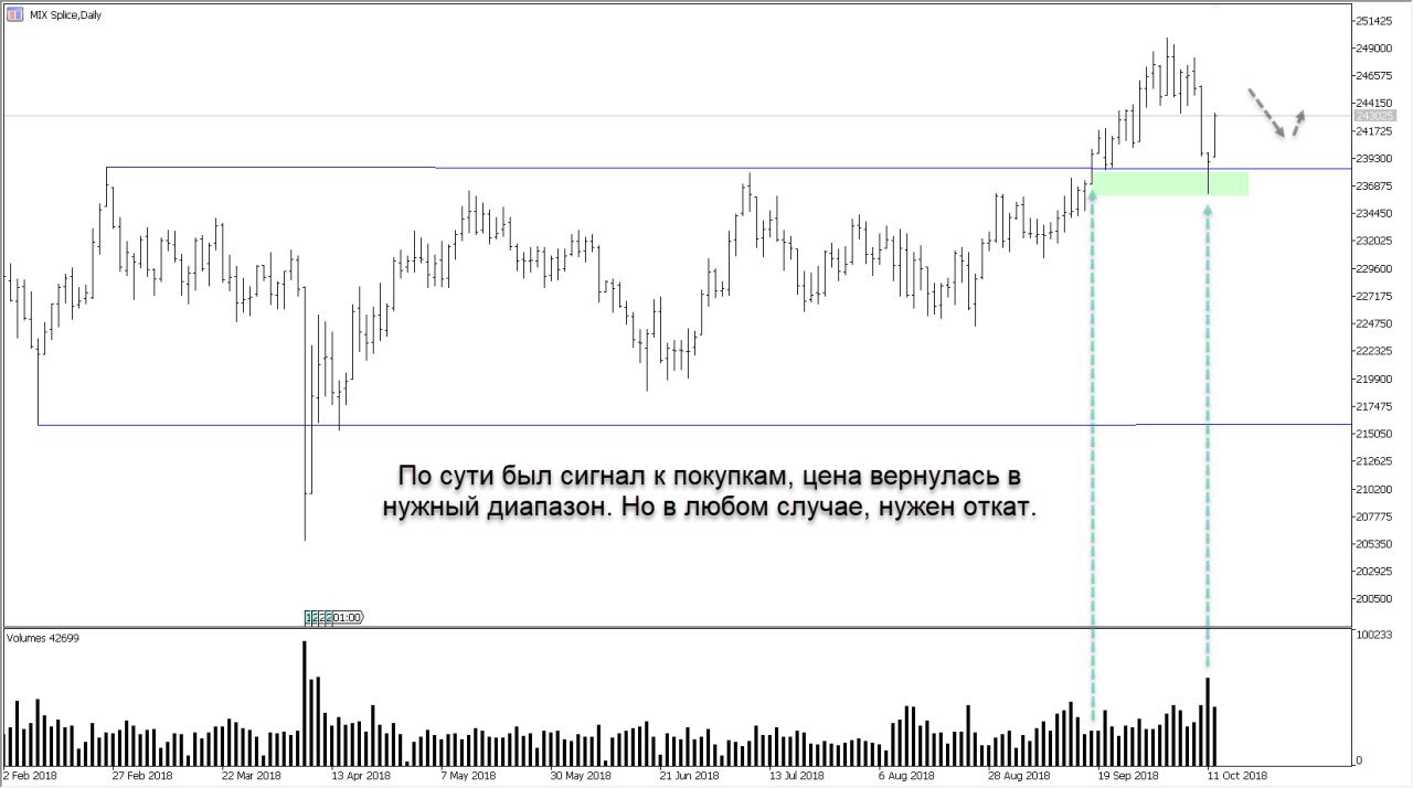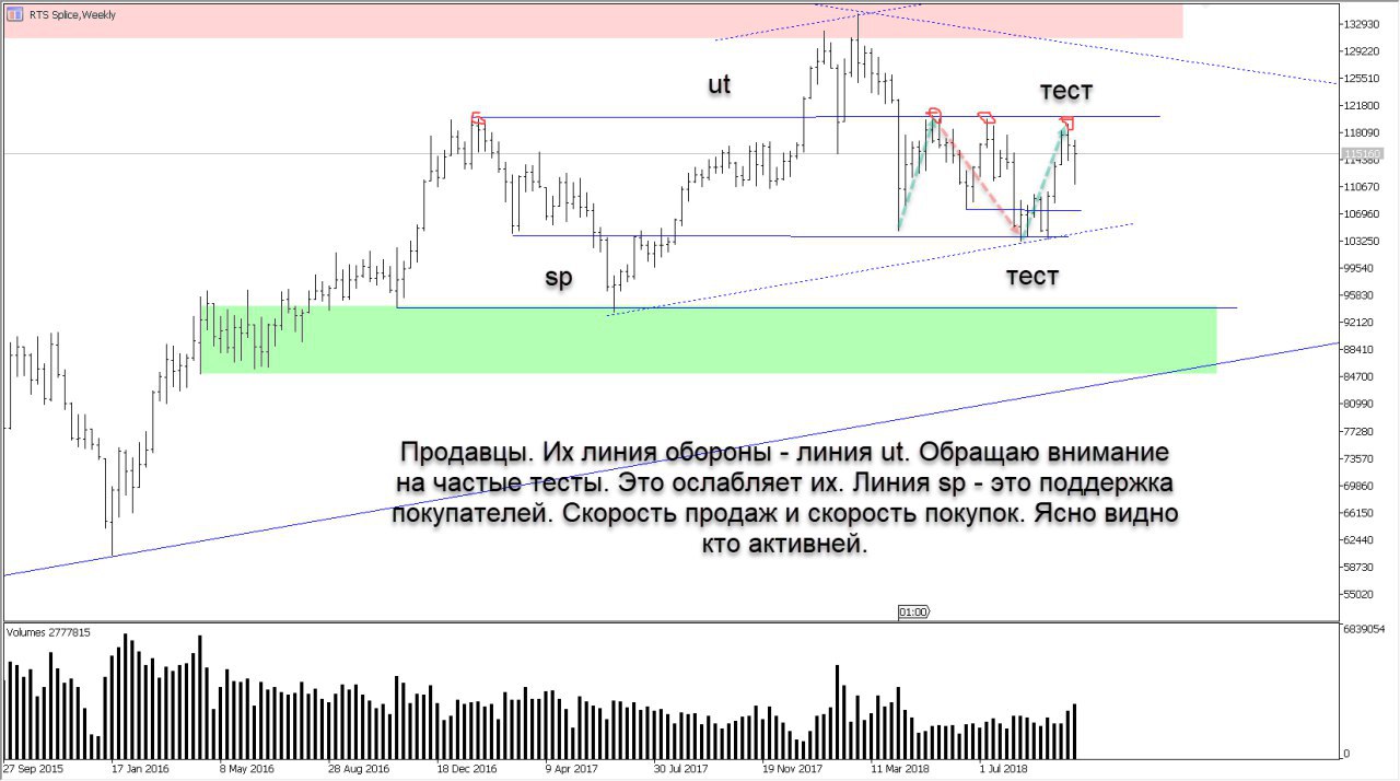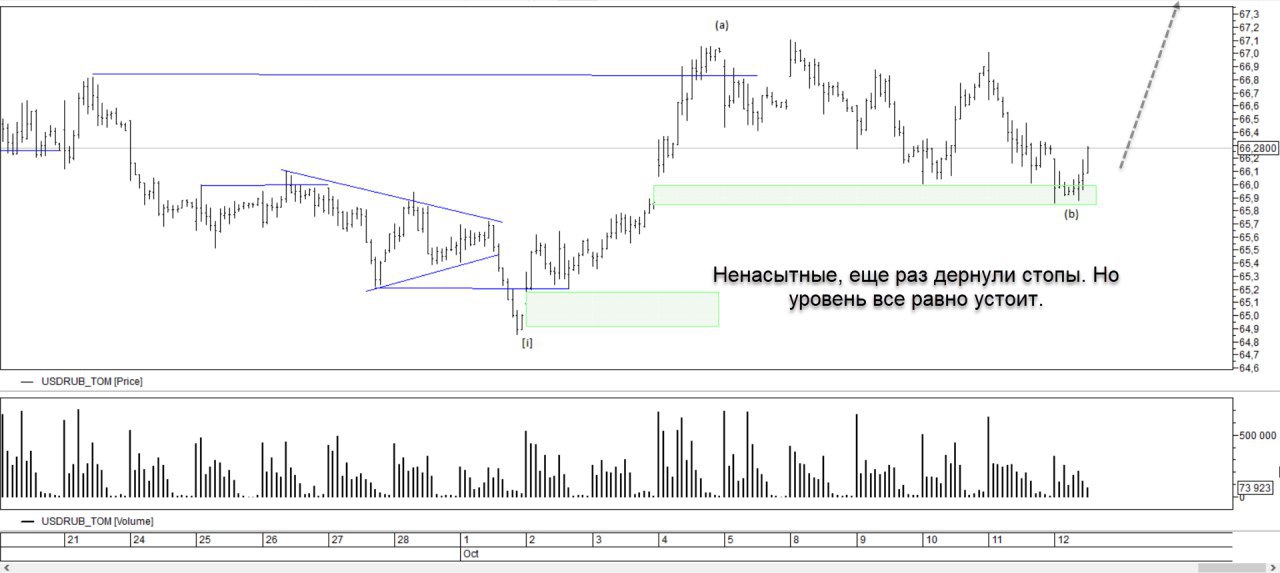 Из этого же уровня прошли объемы. Ожидаю развитие тренда вверх.