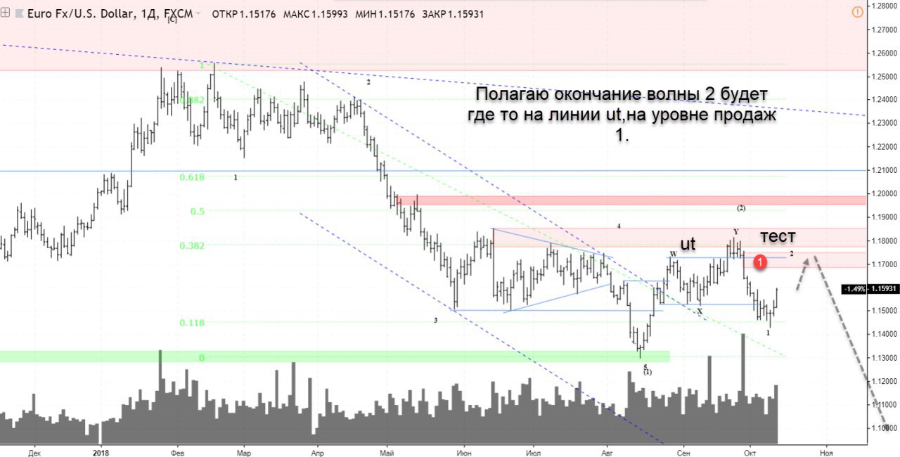 Я ожидал что волна (2) будет повыше, где линия UT. Но Эллиот снова в деле и смотрим текущий приложенный скрин.