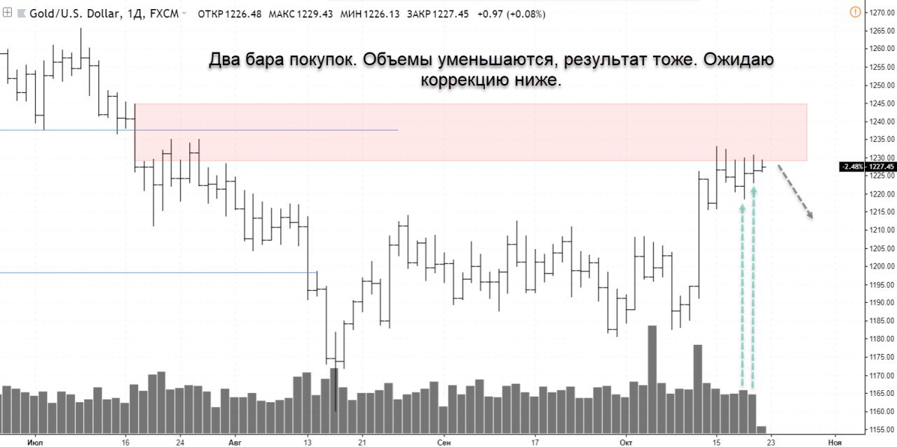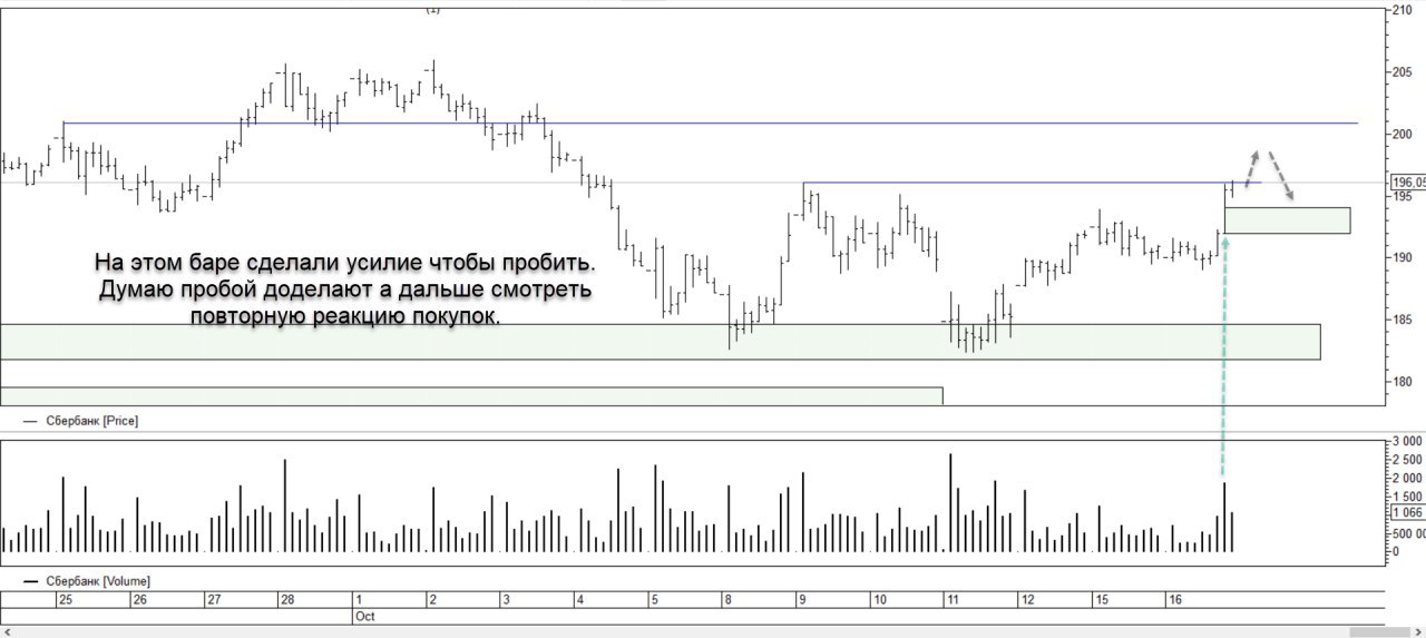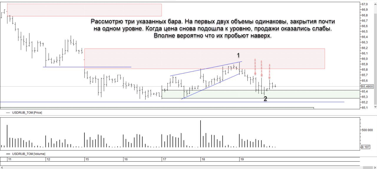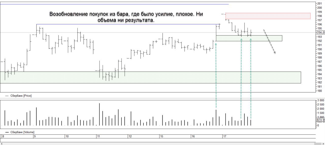 Именно на нем было усилие для пробоя. И чтобы теперь понять, что за пробой, посмотрим на возобновление покупок из него. Возобновление плохое два раза подряд. Ожидаю ниже.