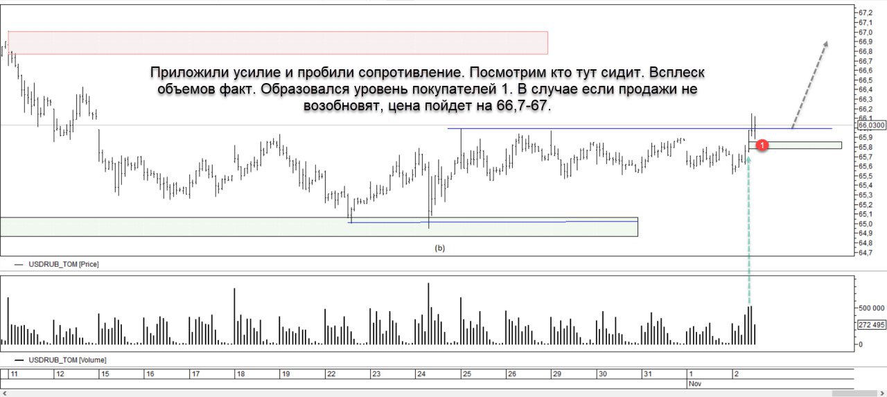 И наконец то пробили это ослабленное сопротивление. Следующийй барьер на пути к 69, это примерно 67+-. Пока в данный момент наблюдаю большие объемы на текущем уровне, но цена падать совсем не хочет. Более вероятно что пробой настоящий. К тому же пробивающие спалили себя и образовали уровень. Посмотрим что они из себя представляют.