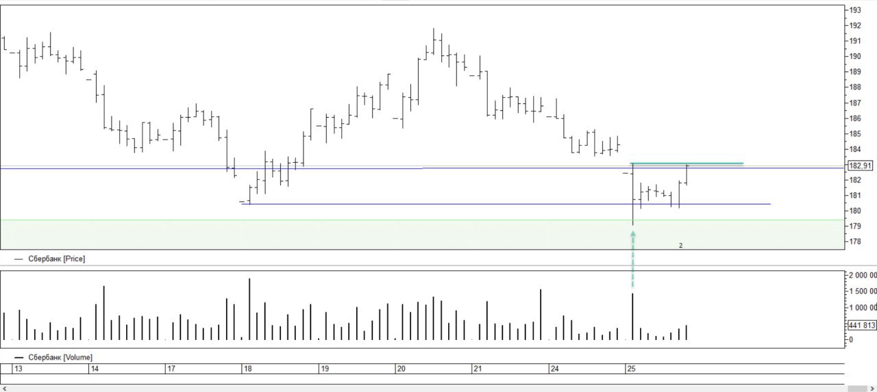 4) Сравнив как сегодня пробили уровни a и b, заметил что при пробое, объема нет. То есть нет профессиональных продаж и к тому же наблюдается выкуп внутри дня как на сбере.