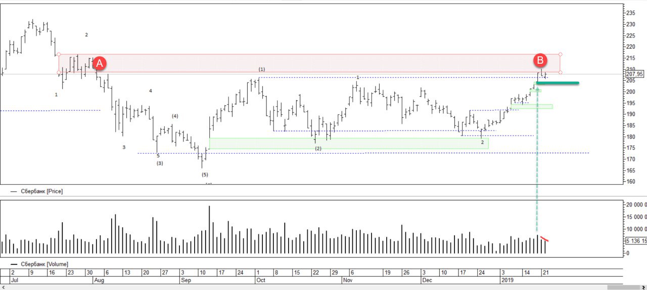 После того как пробили сопротивление, цена попала зону продаж А, но возобновление продаж в точке В очень плохое. Коррекция может быть ограничена этим пробойным баром. Цели в перспективе 225 и 252 +-. https://t.me/TerritoryofTrading/642