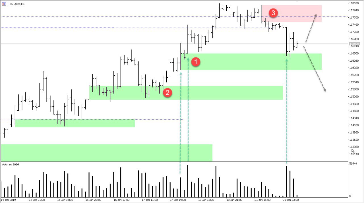 Пора развивать план дальше. Для начала хочу указать главные зоны, откуда были мощные продажи. С диапазонов 1, 2, 3 могут последовать достаточно серьезные откаты. Эти уровни могут выступить как целевыми так и для набора.