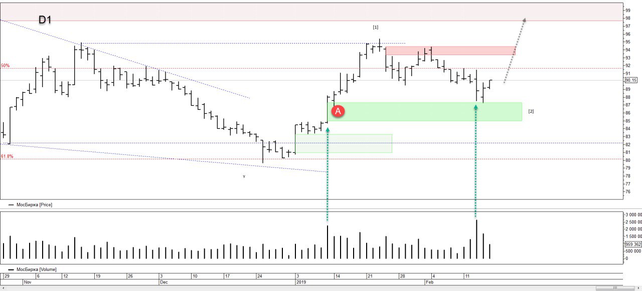 В моменте из диапазона А прошли объемы, что говорит об активности покупок.