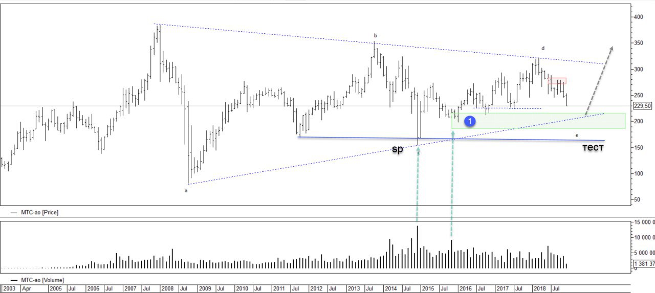 2) Цена подходит к сильной зоне покупок 1 и к нижней линии треугольника. В январе 2015ого тм был сильный выкуп через sp. В моменте цена идет на тест этого диапазона. И что то мне подсказывает, что купивший актив по прежнему там.