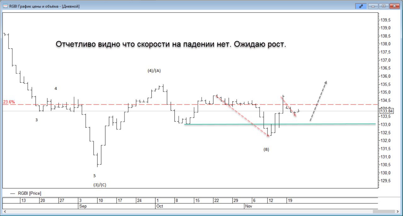 Теперь же, покупки прошли в рамках четвертой волны. Ожидаю снижение в пятую. Что хотелось бы сказать. Вероятно неделю - две будет оказано психологическое давление со стороны СМИ. Говорю в целом о рынке РФ. Скорее всего санкционный фон начнет нарастать + Украина + Сирия.
