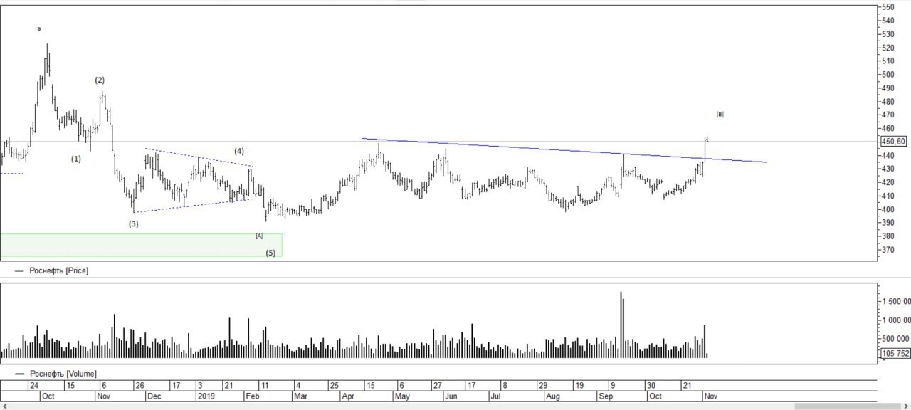 А именно, формируется последняя волна треугольника в волне (4). Далее ожидаю выход в волну (5), с целью в диапазоне 1.
