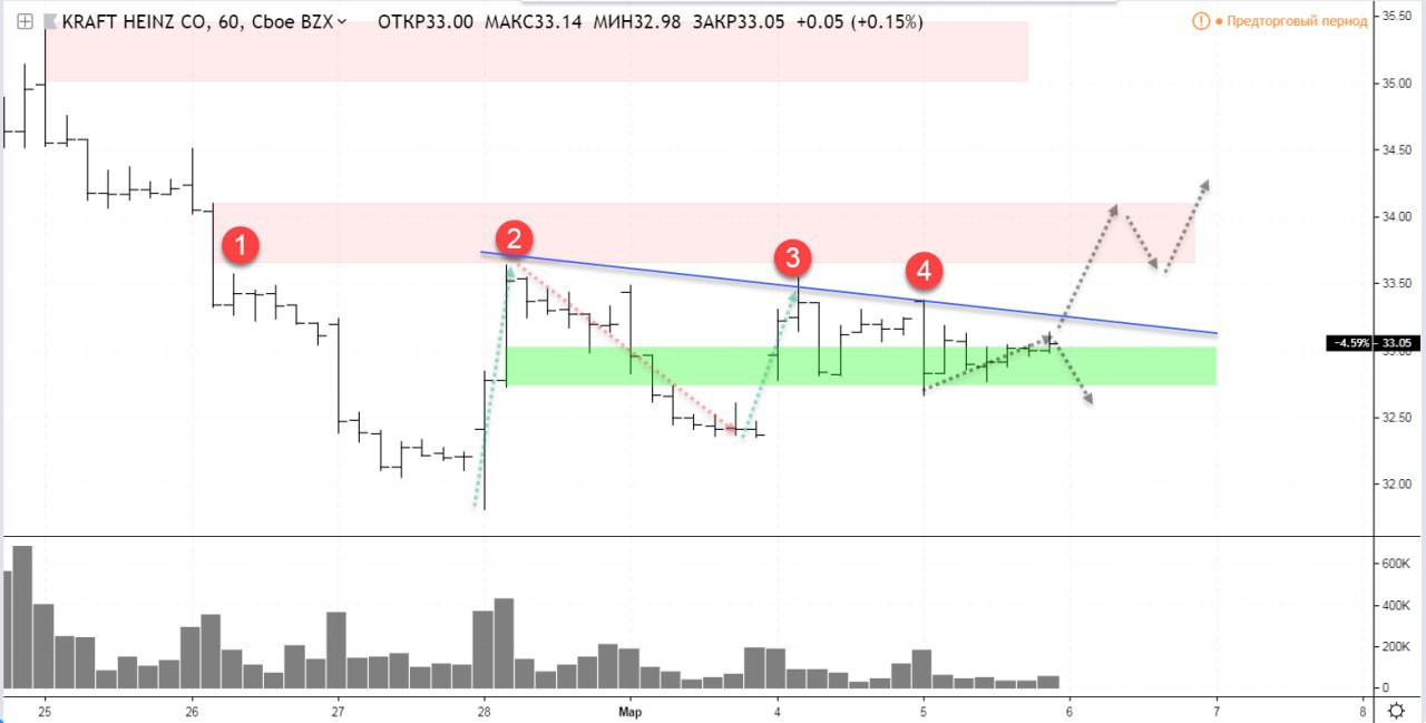 Продолжу тему. Очевидно, актив накапливают. Скорость покупок активней скорости продаж. Последовательно в точках 1, 2, 3, 4 продажи начинают стихать. Но есть такой момент, что сегодняшние покупки очень слабы. Вероятно цена немного просядет. В идеале для покупки, лучше дождаться подтверждения. А именно, проход к зоне продаж и после плохого возобновления снижения, лонг. Так что лучшая позиция- отсутствие позиции, пока что.