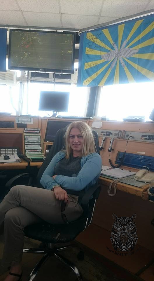 Оказывается, эта прекрасная валькирия работает в сфере авиатранспорта, возможно - гражданский диспетчер. Не будем забывать, что авиабаза Хмеймим создана на базе международного аэропорта имени Басиля аль-Асада. Тем более, что аэропорт уже вовсю с этого года принимает гражданские авиарейсы.
