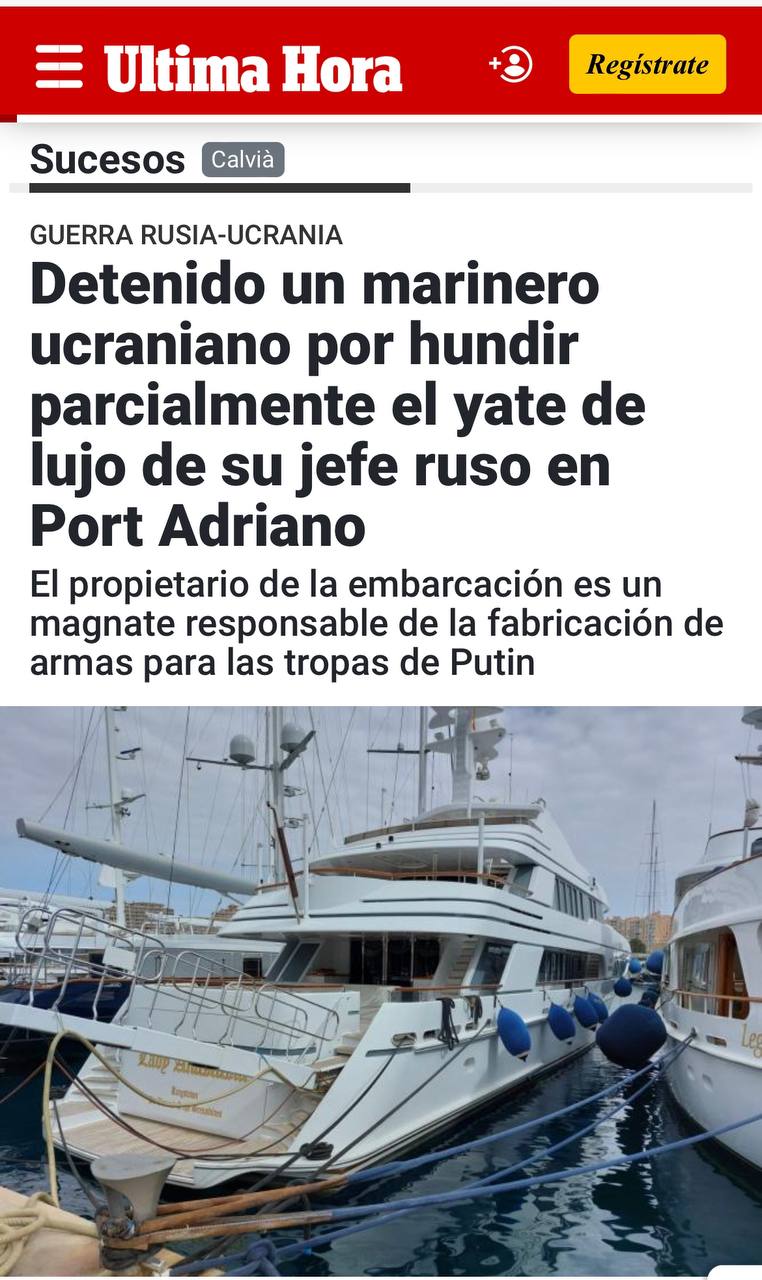 Инцидент, о котором рассказывают СМИ, произошёл несколько дней назад на Майорке. Как заявляет издание Ultima Hora, некий Тарас Остапчук, который работал на яхте Lady Anastasia, якобы принадлежащей главе «Рособоронэкспорта» Александру Михееву, наткнулся в интернете на чрезвычайно взволновавший его ролик. На нём российская ракета врезалась в дом где-то на Украине. Остапчук внезапно решил, что Михеев в силу своей работы может иметь к этому отношение.