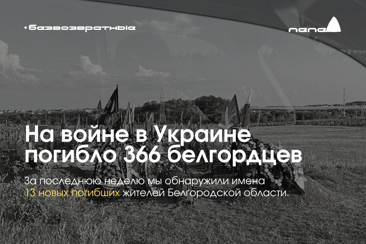 За последнюю неделю мы обнаружили имена 13 новых погибших жителей Белгородской области.