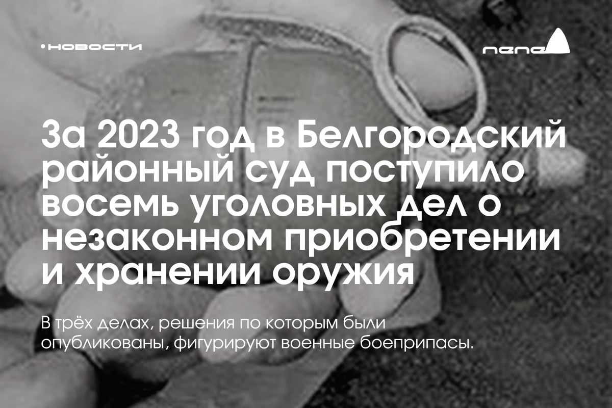 Только за 2023 год в Белгородский районный суд поступило восемь уголовных дел по статье о незаконном приобретении и хранении оружия. В трёх делах, решения по которым были опубликованы, фигурируют военные боеприпасы.