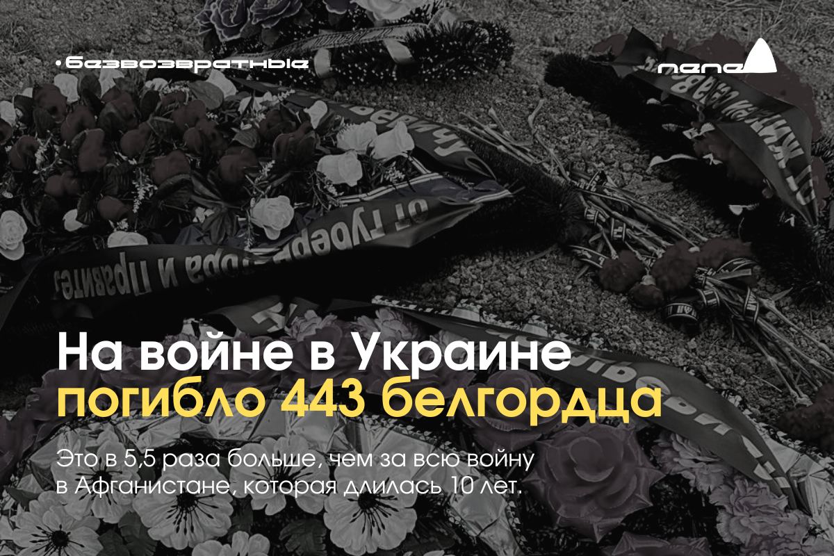 ​​За 561 день войны в Украине погибло как минимум 443 белгородца — в 5,5 раза больше, чем за всю войну в Афганистане, которая длилась 10 лет.
