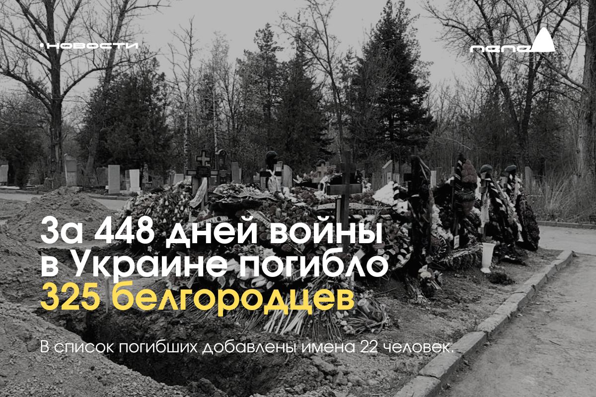 За 448 дней войны в Украине погибло как минимум 325 белгородцев.
