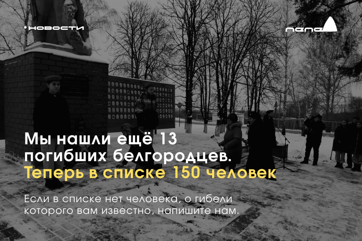 За первый день после публикации исследования мы смогли идентифицировать ещё 18 погибших белгородцев. Теперь, по нашим данным, в Украине погибло как минимум 137 человек.