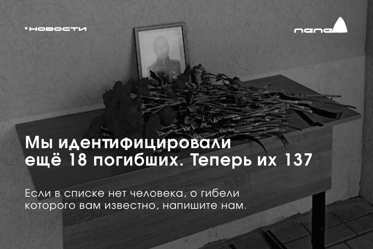 Если вы знаете о ком-то, кого нет в нашем списке, напишите нам в предложку @pepelnewsbot или на почту [email protected] — мы продолжим работу по поиску и идентификации погибших.