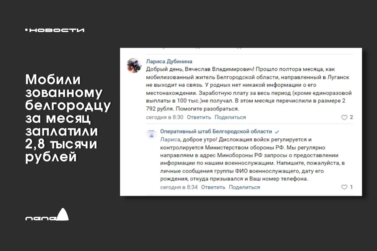 В ней они пишут, что уже очень долго не могут выйти на связь со своими родными и не знают, что с ними произошло, описывая в том числе, что им приходилось пить из луж. А на горячей линии, где должны помогать родственникам мобилизованных, у них берут данные и не перезванивают.