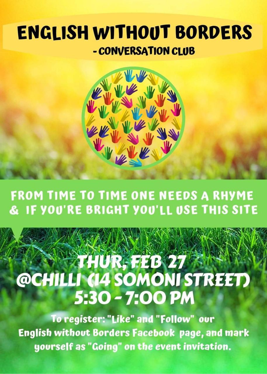 conversation club and a growing friendly community of native and fluent English speaking people.