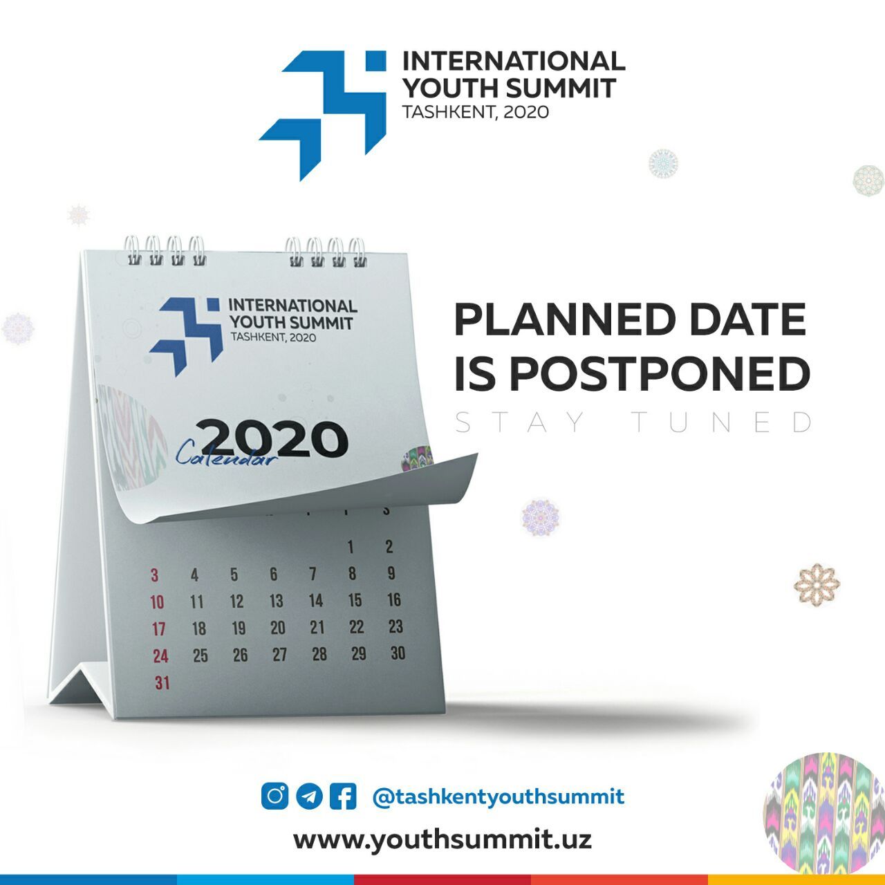 The International Youth Summit, which was planned to be held on 1-3 May, 2020 has been postponed for precautionary measures due to the latest global situation of coronavirus (COVID - 19).