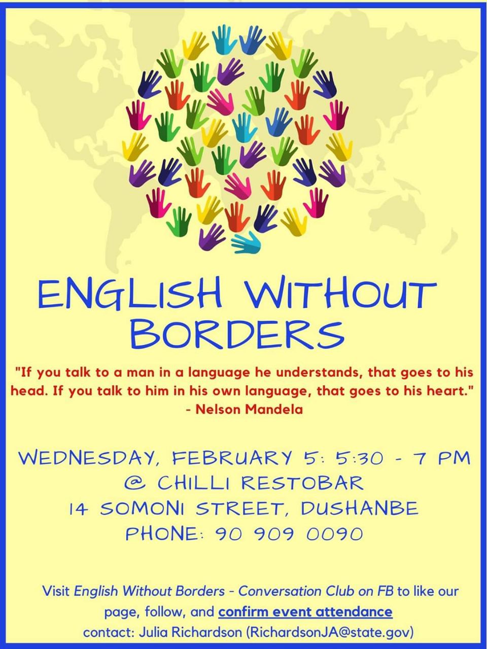 📢👋 Join English Without Borders conversation club 👥 to practice your English with native English speakers in a relaxed and social way.