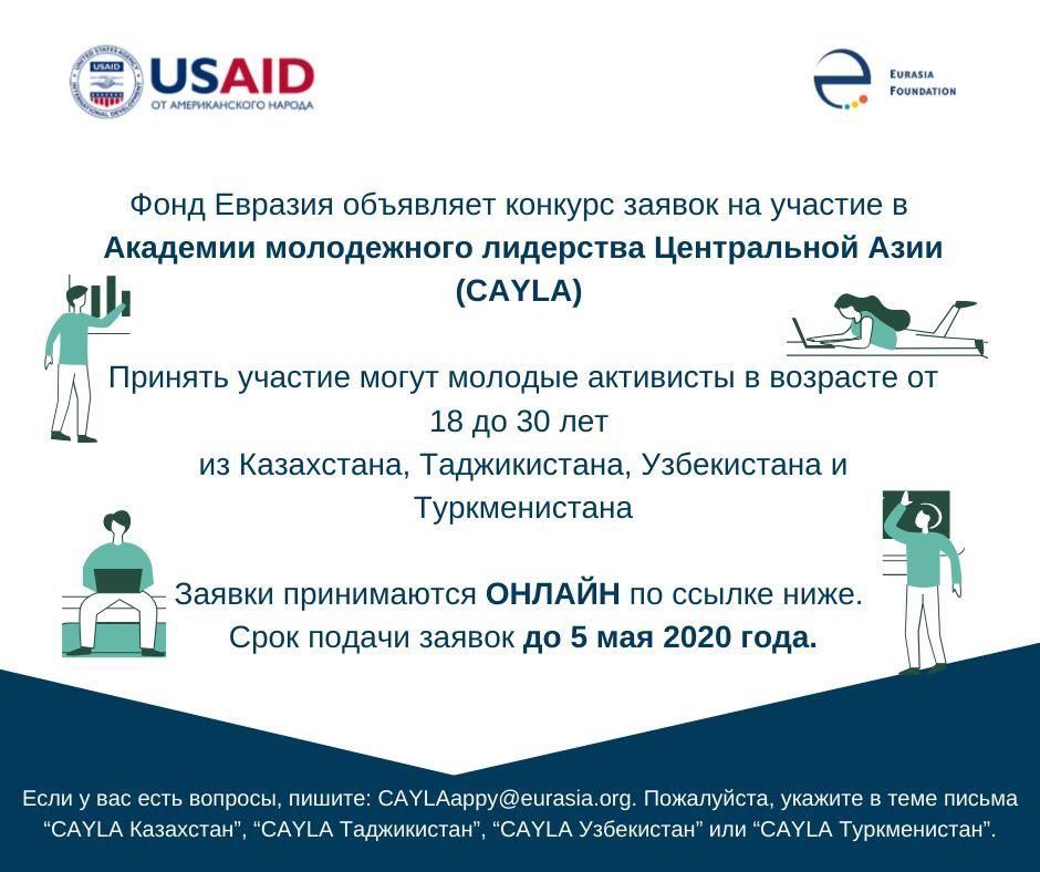 📢Фонд Евразия объявляет конкурс заявок на участие в Академии молодежного лидерства Центральной Азии (CAYLA).