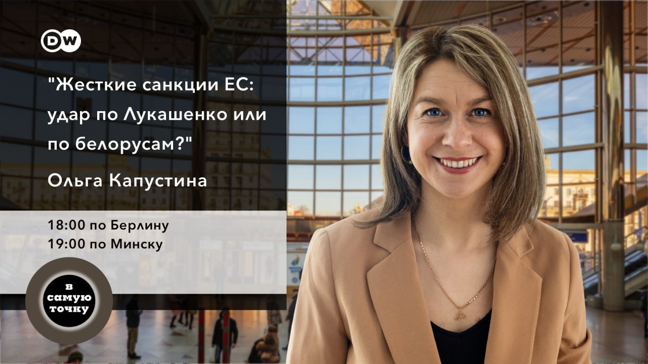 Полный выпуск ток-шоу DW "В самую точку" о санкциях Евросоюза, суде над Лукашенко, плане “Перамога”, Кремле и возвращении в Беларусь смотрите тут.