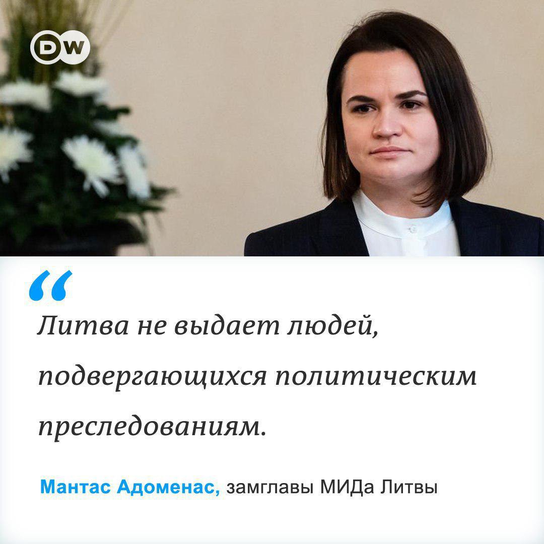 Генпрокуратура Беларуси официально запросила Литву выдать Тихановскую, чтобы привлечь ее к уголовной ответственности. Вильнюс уже отвечал, что этого не сделает. Вот, что ранее заявил DW замминистра иностранных дел Литвы Мантас Адомена.