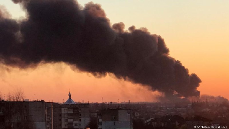 Потери личного состава войск РФ с начала войны составляют 14 200 убитыми, сообщает МВД Украины по неподтвержденным из других источников данным. На фото: столб дыма после взрыва во Львове.