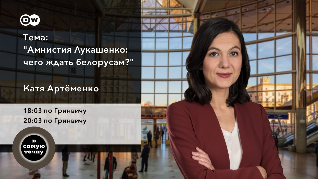 Бывшая политзаключенная, сооснователь By_Help и правозащитник обсудят амнистию от Лукашенко в ток-шоу DW "В самую точку". Зачем властям амнистия? Попадут ли под нее политзаключенных? Пойдет ли Европа на торг с Лукашенко?
