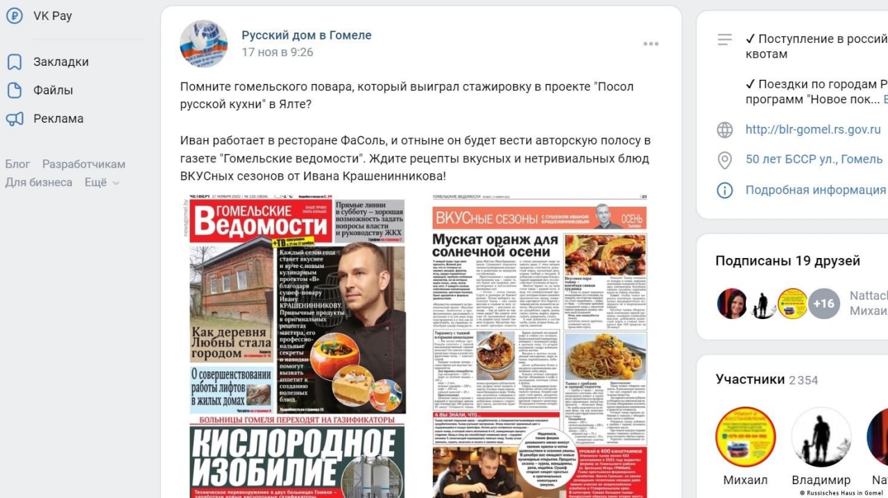 Сейчас в Беларуси есть три Русских дома - в Минске, Бресте и Гомеле. После российского вторжения в Украину их активность возросла - они проводят тренинги и семинары, работают со школьниками, говорит координатор "Вясны" Алена Маслюкова. В том числе, например, в обход закона отправляют молодежь в Крым.