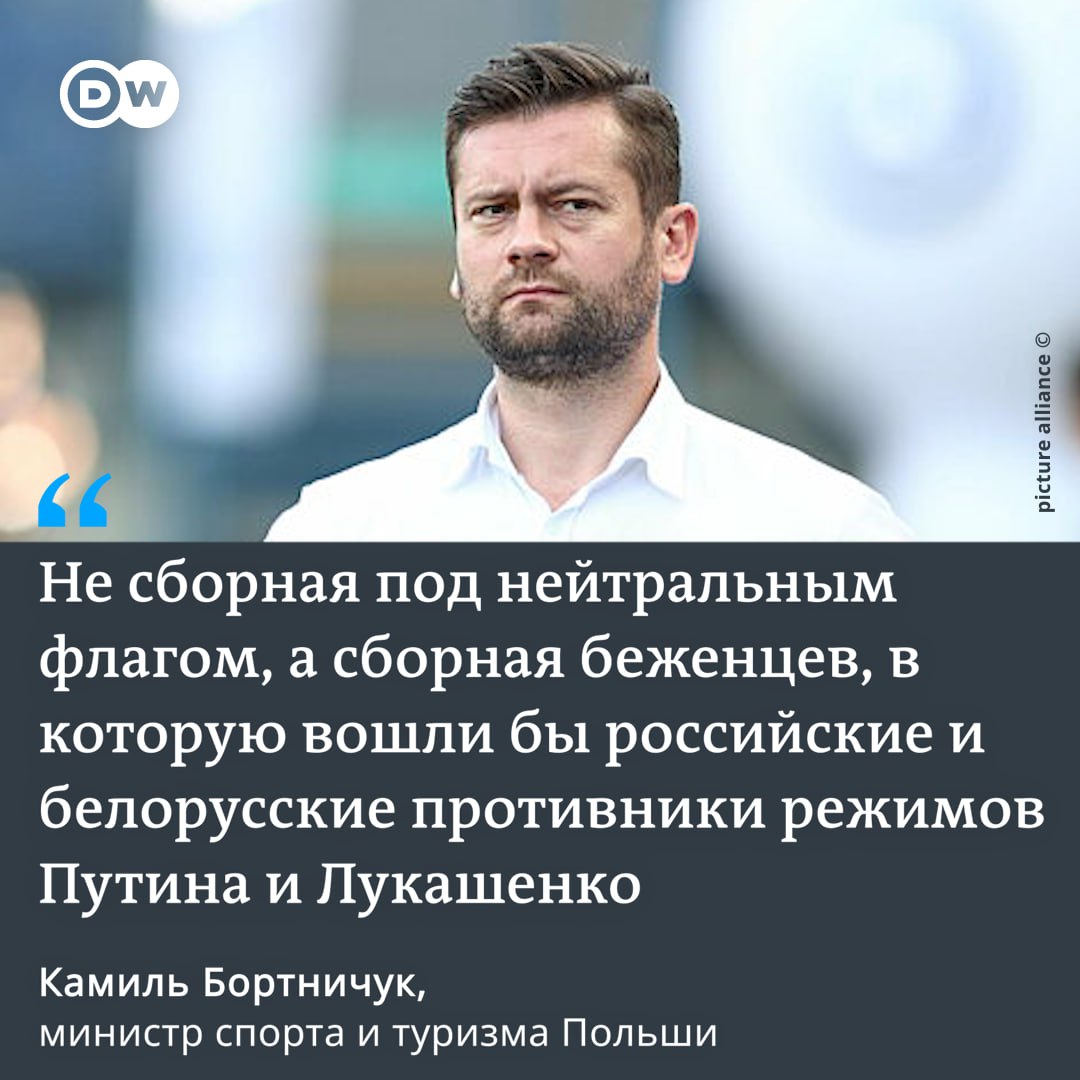 Спортсменов из РФ и Беларуси, бежавших от режимов Путина и Лукашенко, можно было бы допустить до Олимпиады в составе команды беженцев, считает польский министр спорта Камиль Бортничук. Он предлагает это МОК в качестве компромисса, который предотвратил бы обвинения в дискриминации по национальности или паспорту.